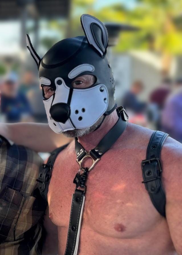 Until I made my debut as pup Spunk last November 2025, it had been a long time since I wore a collar that someone might interpret as a sign of submissiveness. I’d forgotten what it was like to have a total stranger reach out and grab hold of my gear (in this case, a collar). I’d also forgotten how to respond when that happens. I was out of practice.